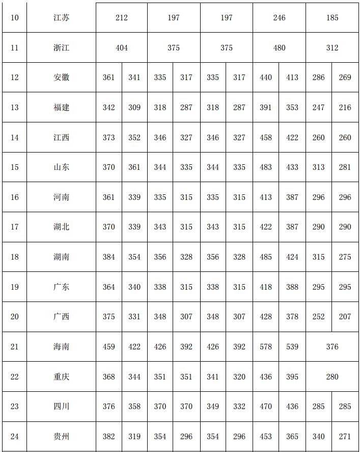 12 | 湖北 | 290 | 290 | 312 | 275 | 265 |