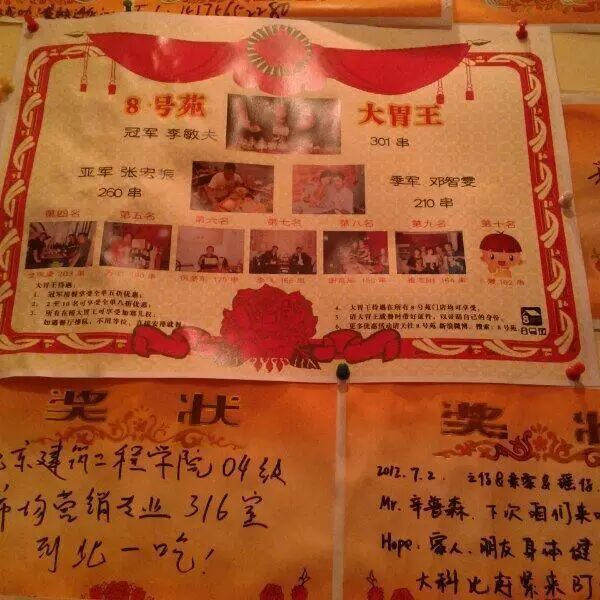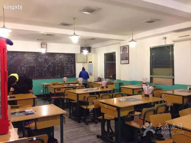 推荐理由:北京8号学苑是一家典型的80后主题餐厅,里面的各种串、翅价格都很实惠。 里面的装修就是教室,叫服务员要叫老师,真的你会觉得瞬间回到之前的学生时代。收银台那儿是一个大黑板,上面有校规、测验题、课程安排,最上面还插了面小国旗;每个“课桌”上面都有一个课程,比如历史、化学、数学、语文等。 餐具也是十分复古的80后东西,比如搪瓷缸、搪瓷盘。边上的墙一面是80后小时候看的动画片照片;一面墙贴的是名人照片,...哈哈哈