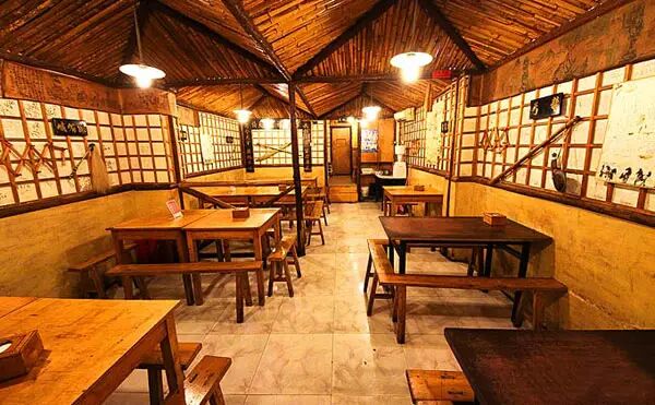 推荐理由:很难想到,霓虹灯闪烁的东直门内大街里面还藏着这么家有趣的小餐馆。走进这家小馆,会有种穿越的感觉,因这家店的装潢是在太有特色。墙壁上胡乱的涂鸦,窄长的木凳木桌以及喧闹着的小二们让你有种置身江湖的感觉。菜单上的菜名全都出自金庸的武侠故事。小店的食物也很有江湖味,头盘上来几颗大力丸(糯米包裹的肉丸子)可是武侠中人士的最爱,紧接着一盘“玉女心经”(蔬菜炒肉),读过《神雕侠侣》的人可都知道,杨过和小龙女那婉转动人的爱情故事,曾经令多少人心碎神往啊。