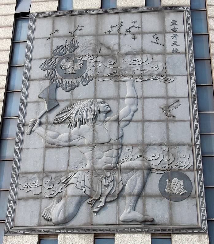 笛子哥所供职的东方今报社就位于中原福塔的基层三层,每每看到这些浮雕,笛哥就觉得有必要向小脚丫们介绍这些中国远古的神话。从今天起,我将以《中原福塔上的中国神话》为题,逐一介绍这十四幅浮雕,以及与其有关的神话传说。第一篇:《盘古开天地》。