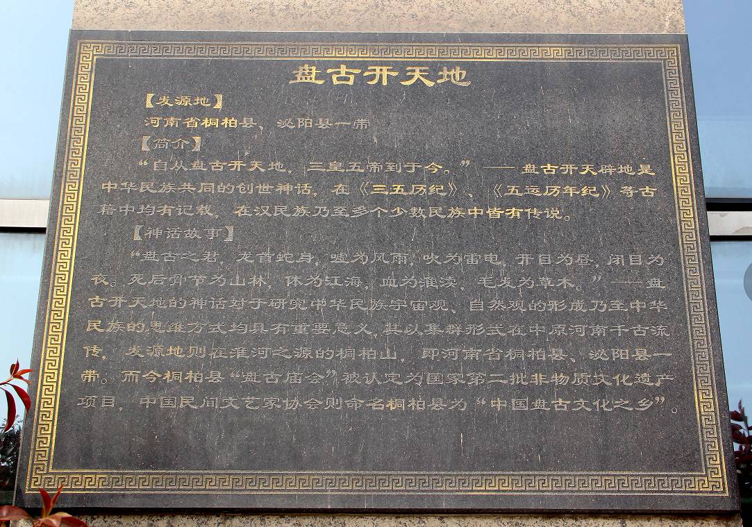 上述“盘古开天地”这一神话故事,出自三国时徐整作《三五历记》。《太平御览》有引用:“天地浑沌如鸡子,盘古生其中。万八千岁,天地开辟,阳清为天,阴浊为地,盘古在其中,一日九变。神于天,圣于地。天日高一丈,地日厚一丈,盘古日长一丈,如此万八千岁,天数极高,地数极深,盘古极长。故天去地九万里。”