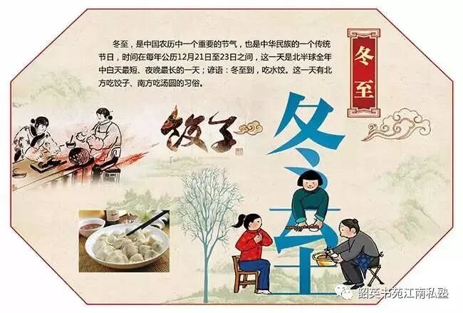 冬至是我国农历中一个非常重要的节气。它是二十四节气中最早制订出的一个,早在2500多年前的春秋时代,我国就已经用土圭观测太阳测定出冬至来了。与夏至相对,冬至也是中华民族的一个传统节日。冬至日在每年的阳历12月22日左右,农历十一月十七前后。