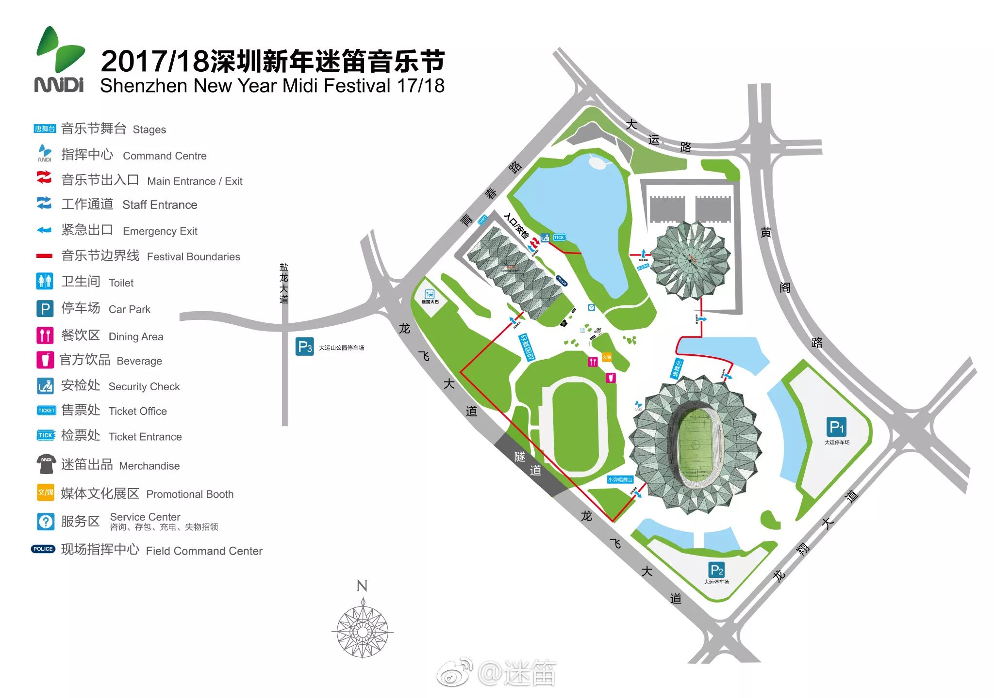 本次音乐节共设有三个地面社会车辆停车场: