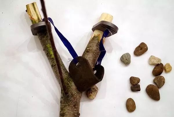 树杈做成的弹弓,小时候不知道用它来伤害了多少只小鸟?其实只要是树杈杈都可以做成弹弓,但如果你对弹弓比较有要求,可以选择杵榆木的树杈杈来做弹弓,像桃树就有很多树杈杈,而且无需加工,绑在一根橡皮筋,就可以了。