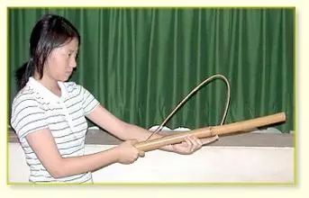 这个选用的竹子要小,两边都是空的,然后用一根小筷子,削好能顺利从竹筒里放进去,再做一个和帽,你们小时候都是用什么来做子弹,相信大部分小伙伴都是樟树子作为首选吧!除了樟树子,纸团弄湿揉成一小团,放进竹筒孔里,筷子一用力,“啪”,和qiang的声音差不多哦!
