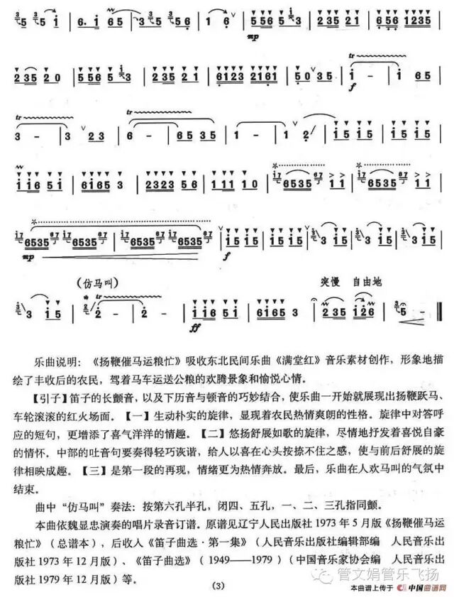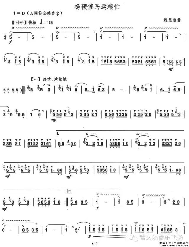 《扬鞭催马运粮忙》是魏显忠创作于1969年10月的一首笛子独奏曲。该曲根据东北民间音乐风格创作,是新派笛子的代表乐曲之一。