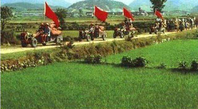 那清脆嘹亮的唢呐声里是人们熟悉的《满堂红》曲调,男女老少个个喜逐颜开;那运粮的马车一辆接着一辆,红旗招展,锣鼓喧天,车把式扬鞭催马,车上人纵情歌唱,浩浩荡荡的车队奔向远方..
