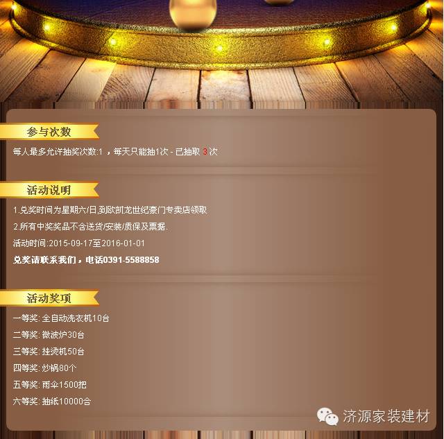 中奖后请您填写手机号,姓名,礼拜六,礼拜天到欧凯龙世纪豪门集成吊顶店领取奖品!