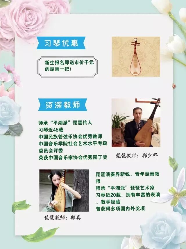 琵琶作为民族弦乐最具代表性的乐器,可演绎诸多风格的曲目,老少皆宜,男女皆可习练。