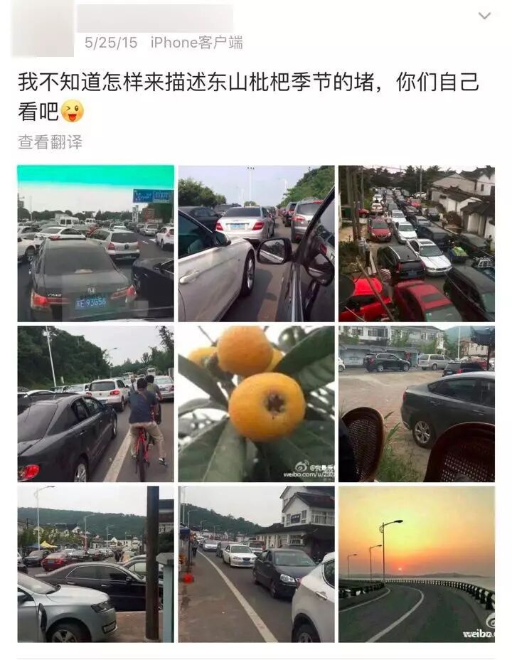 外地人可能很难理解苏州人对东西山枇杷的狂热,就那么一颗小果子,每年都有,怎么附近的人每年争着抢着去买?每年枇杷成熟,周末去东西山的路肯定是这样的↓