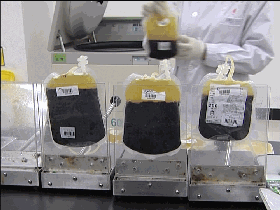 ▲在血站的核心部门——检验科里,技术人员对血液样本进行检测。