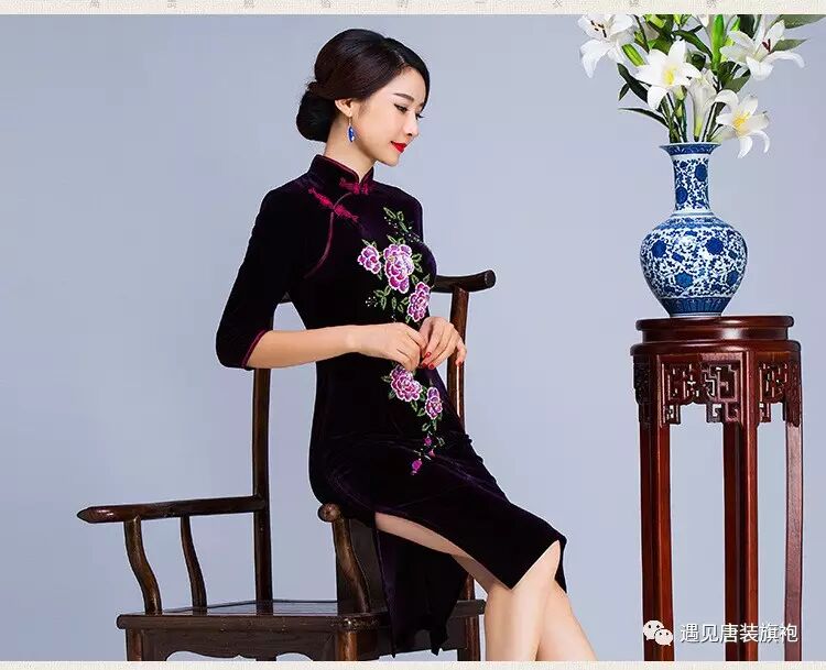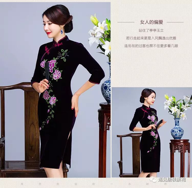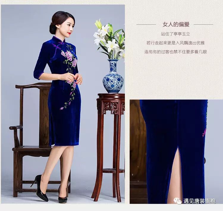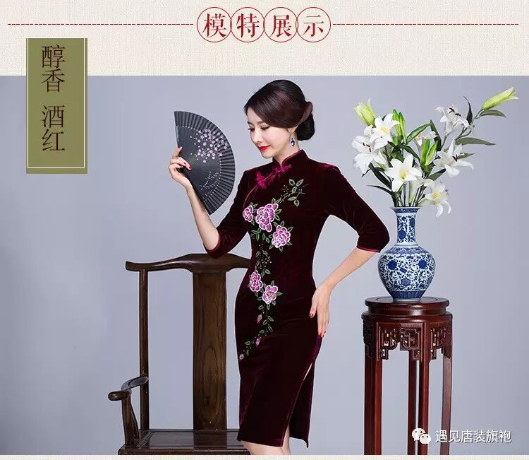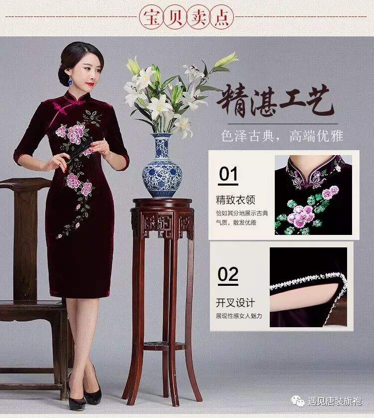 官方正品推荐产品 QQ-321复古手工钉珠金丝绒旗袍 今日推荐价:仅需398元