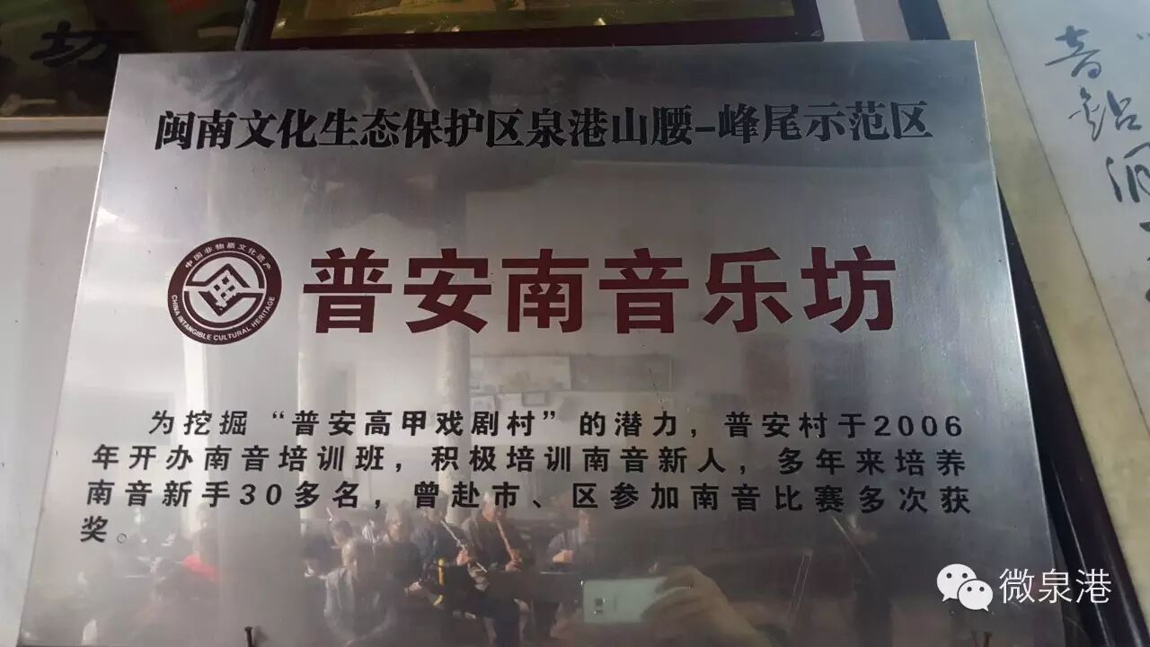 闽南文化生态保护区泉港山腰-峰尾示范区普安南音乐坊为挖掘“普安高甲戏剧村”的潜力,普安村于2006年开办南音培训班,积极培训南音新人,多年来培养南音新手30多名,曾赴市、区参加南音比赛多次获奖。