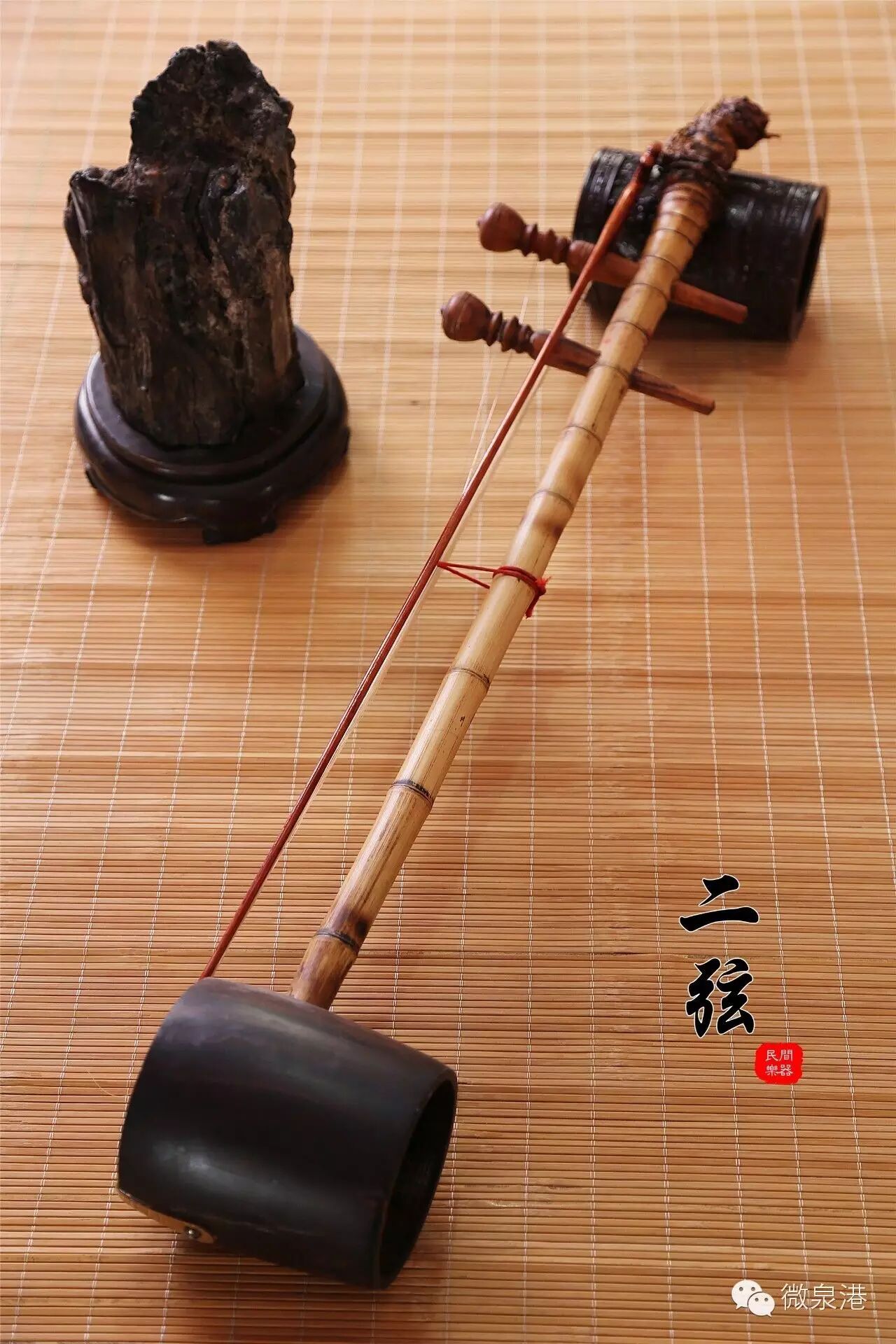二弦:它不像二胡,跟二胡最大的不同,二胡琴轴在外面,二弦在里面。二胡是丝弦。它主要的作用是拉长洞箫的长音,再加一个润色的作用。