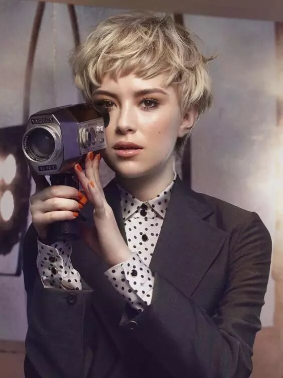 剪超短发的女孩通常都会给人一种偏中性干练的酷酷感,如果再加上这款刘海是不是瞬间就吸引了你的眼球。不仅不会觉得比男生还要man。反而变得好性感~又带了些神秘的女人味的感觉,整个气质也立马提升。