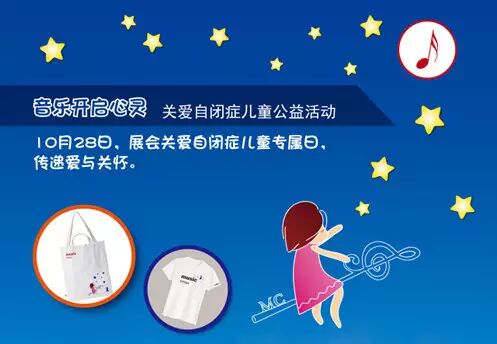 10月28日,上海乐器展的第三天是Music China关爱自闭症儿童专属日。通过爱心环保袋的义卖、爱心乐器的捐赠、“星星”的演出等活动,呼吁更多的社会人士关爱星星的孩子,帮助更多的自闭症儿童完成艺术梦想。