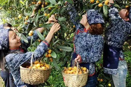 和家人朋友一起采摘新鲜的枇杷,