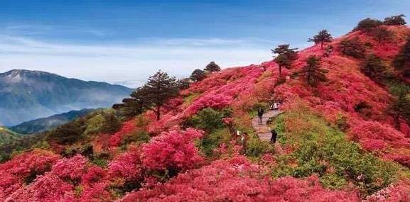 杜鹃花(:又名映山红、山石榴,为常绿或平常绿灌木。相传,古有杜鹃鸟,日夜哀鸣而咯血,染红遍山的花朵,因而得名。