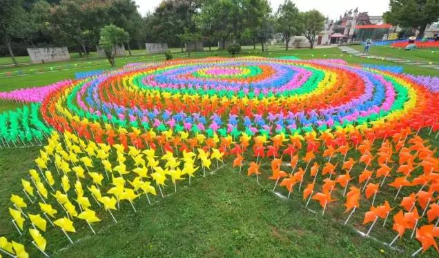 2000个各式风车,举办风车展示及迷宫游园活动。
