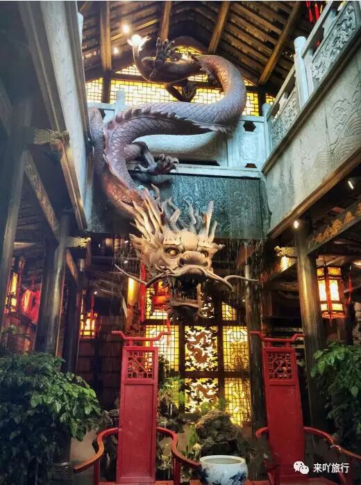 装饰考究独特,很有地域风味,柱子上、房梁上,到处都是龙元素,中国风味道十足。