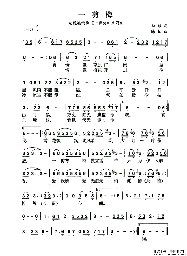 《一剪梅》是1984年台湾同名电视剧的片头曲,原唱为林禹胜,经典版本由费玉清演唱,后又成为2009年霍建华、吕一主演电视剧《新一剪梅》的片头曲。