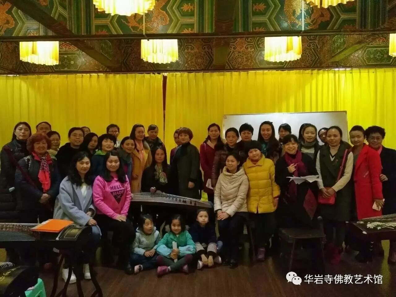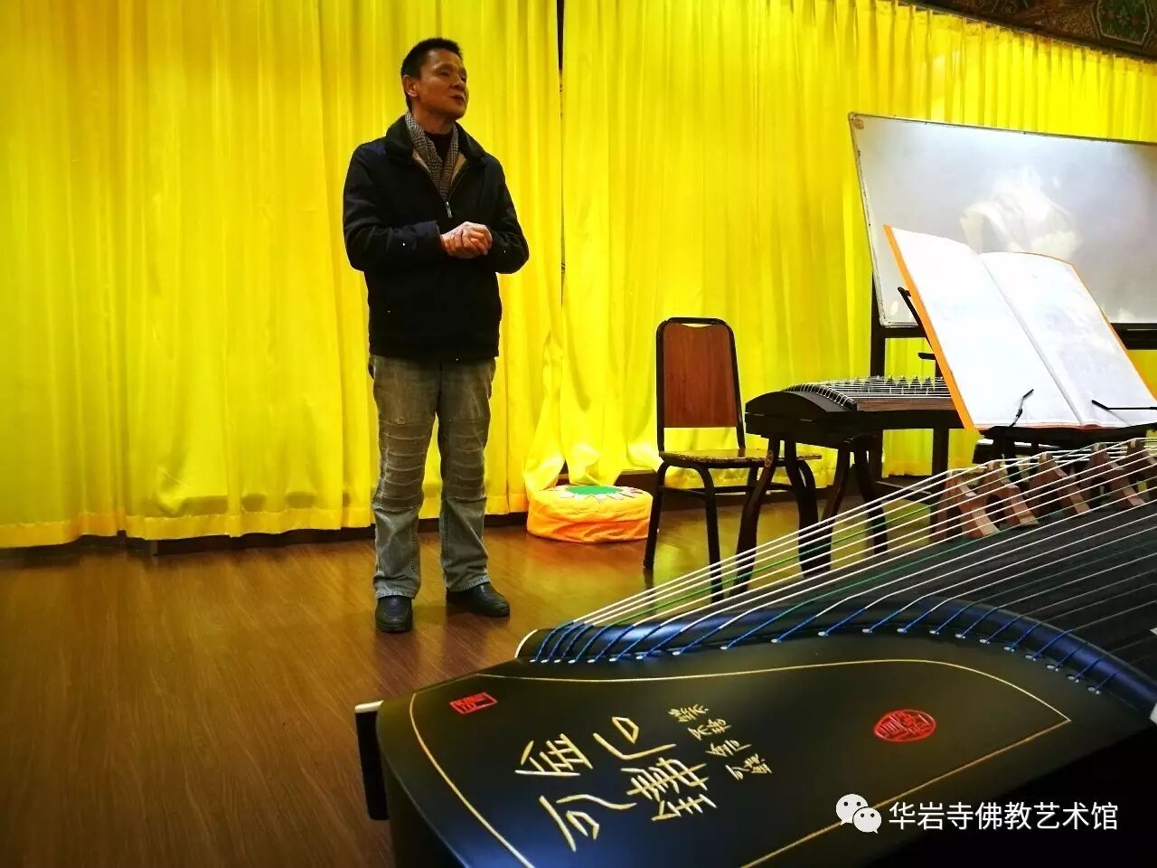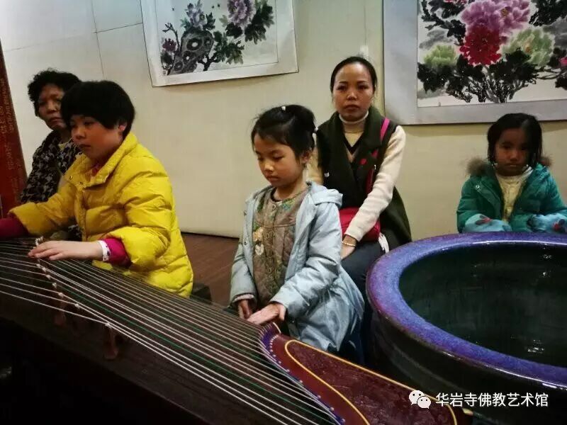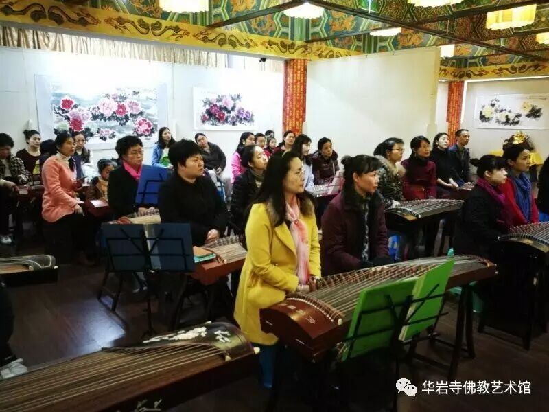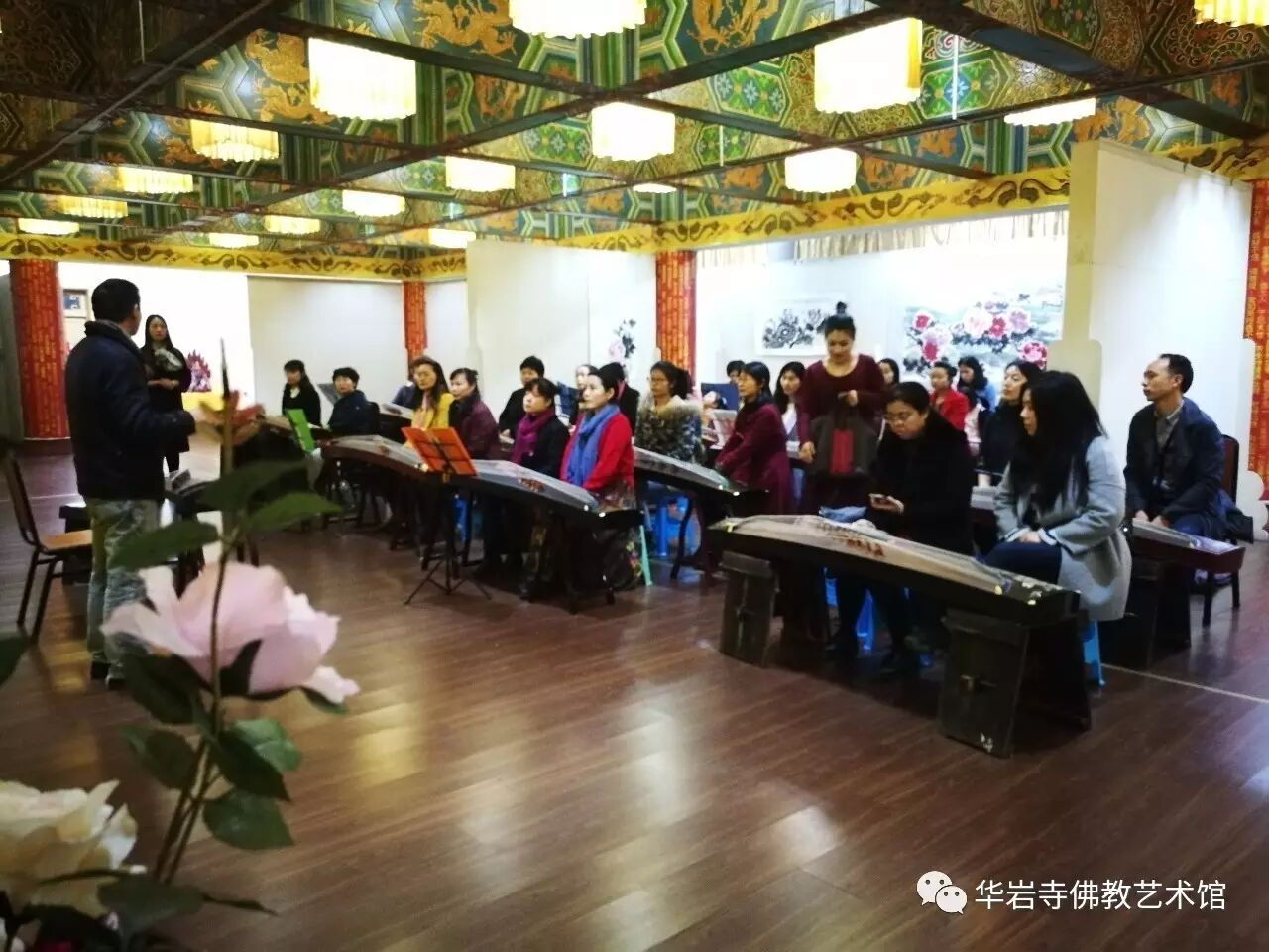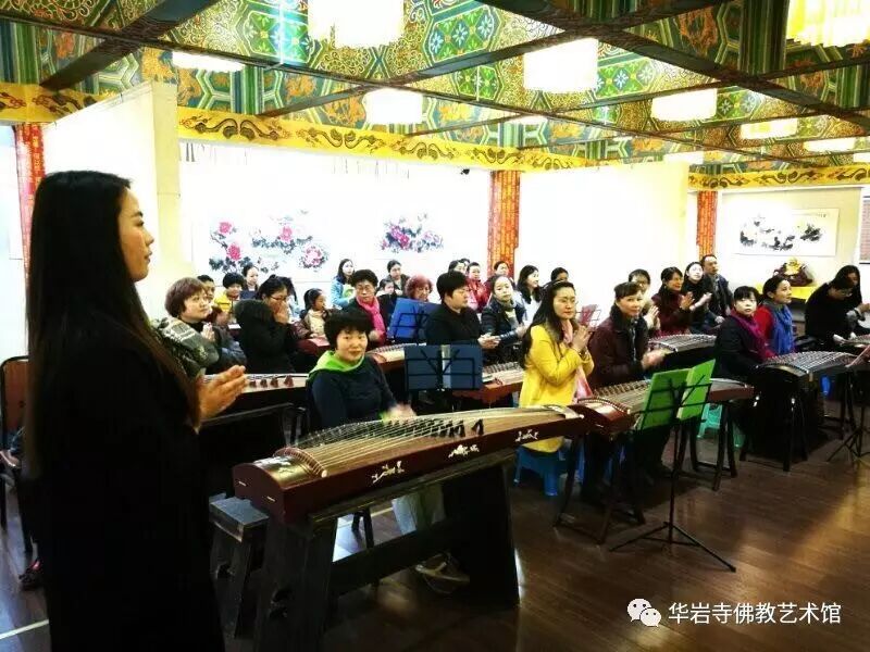下午四点,弘法楼琴声悠扬,华岩寺艺术馆公益古筝培训班第五期第一堂课开启。课前艺术馆馆长做了开学致辞,李老师讲解了古筝的起源以及流派,如何认识琴弦、指甲、坐姿和手势等基础。老师弹奏了歌曲菩提歌,这也是今天学习的第一支曲子。随着琴弦跳动,菩提心坚固。