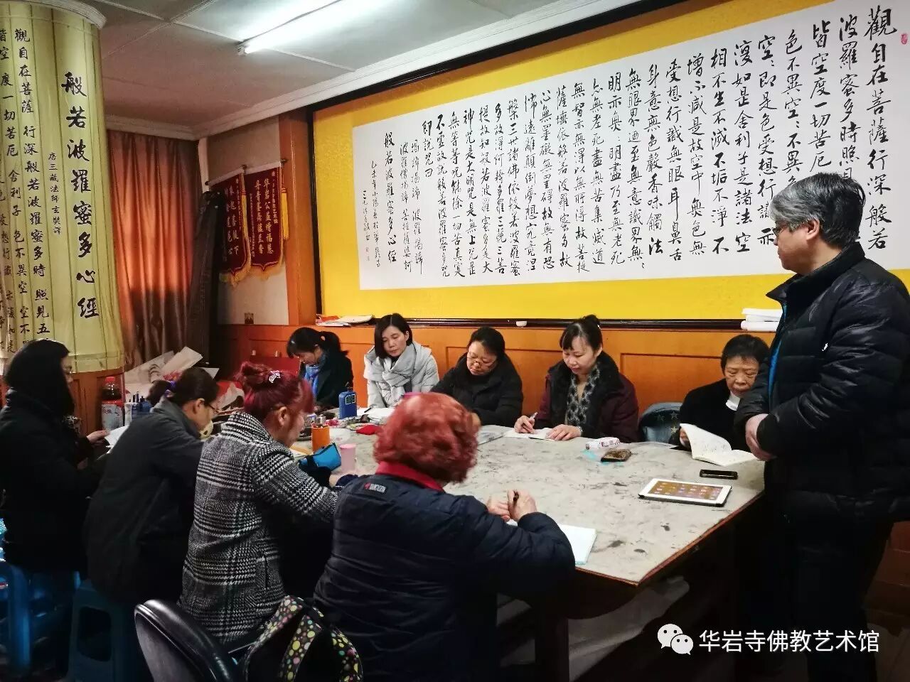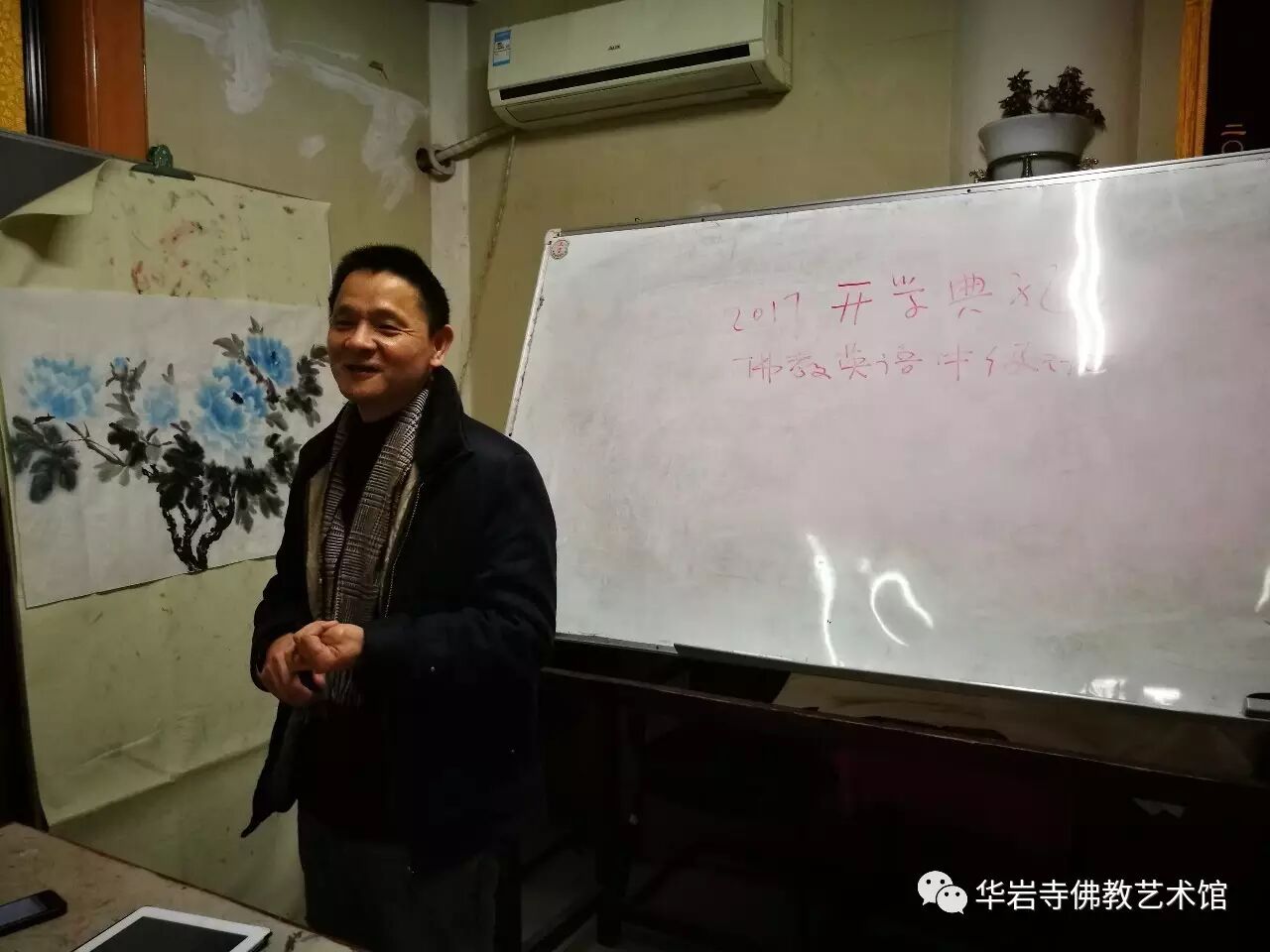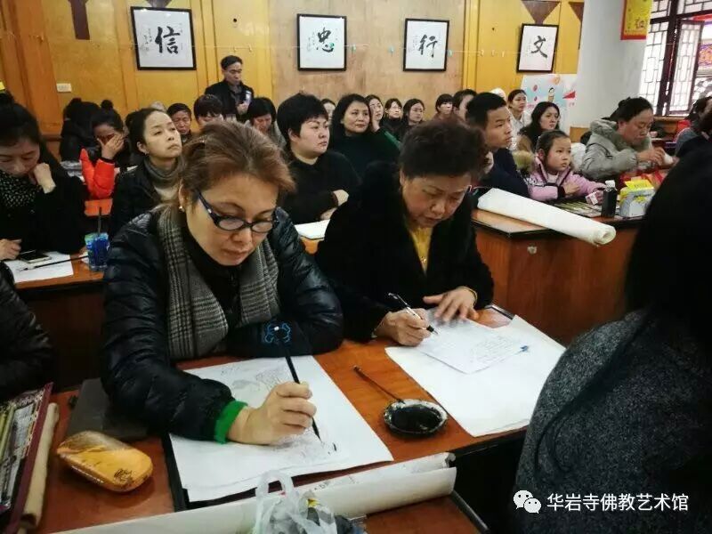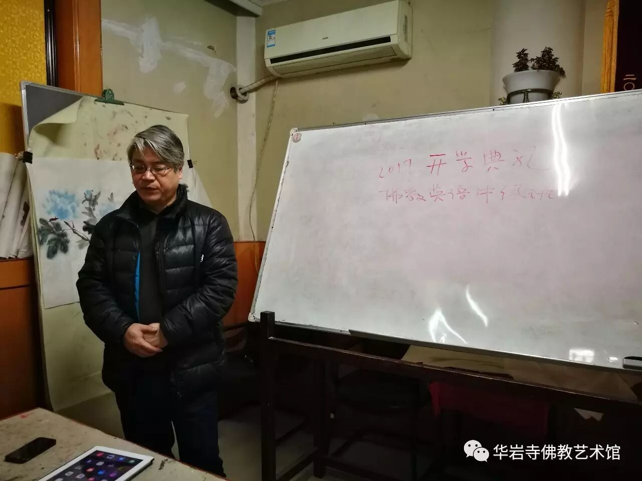 工笔画是以精谨细腻的笔法描绘景物的中国画表现方式。周日下午在华岩寺弘法楼二楼第三期工笔画公益班正式开课,近六十名学员参加本次学习。张馆长代表寺院为大家作开班致辞。本期课程继续由国家一级美术师侯洪俊老师授课。 侯老师介绍了工笔画的分类与基本步骤,画具的试用方法。并为上一期给华岩寺捐画的学员颁发收藏证书。课后老师和新老班委成员开会,落实了具体分工,志在为这一期的公益班义务服务,让大家在一个融暖的环境下共同学习,更好地传承中国传统国画画法。