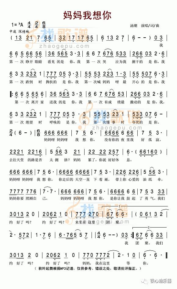 《妈妈我想你》是歌手汤潮于2008年5月,为四川地震倾情创作,且在众多的抗震歌曲中脱颖而出,是由其作词、作曲并演唱的。这首歌作词朴实无华,亲切质朴,听来让人为之动容,潸然泪下。