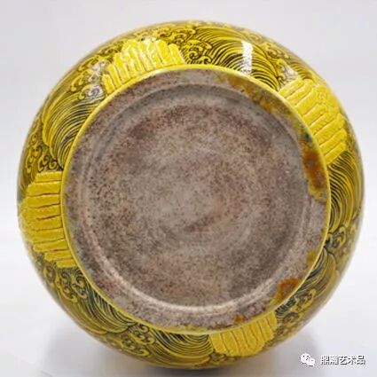 黄釉瓷在古陶瓷艺术中占有很重要的位置,是汉族传统的陶瓷装饰艺术,最早出现于唐代。黄色一向是帝王专用色,黄釉瓷器更是明清宫廷用瓷,决不许民间使用。即使在叛乱不断的嘉靖时期,也严禁民间使用,民窑即使可用金彩,也不可以用黄釉瓷。明中期三朝在黄釉瓷的基础上还大量烧制了黄釉青花、黄釉绿彩、黄釉红彩、黄釉紫彩等黄釉彩瓷,这些瓷器在明以后也多有烧制。