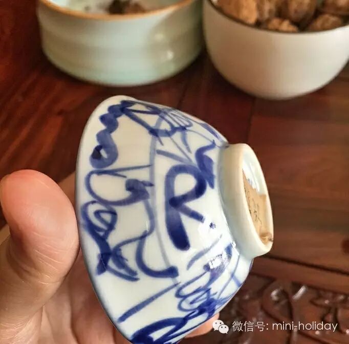 老白自己用的啥杯子?我特意留意,发现是一只再粗鄙不过、笔法混乱,满满画着一圈奥义不明的“鬼画符”,杯底还潦草写了一个“二”。
