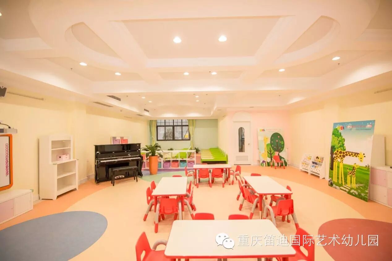 笛迪位于中渝. 梧桐郡里。幼儿园的整体为北欧风情别墅,环境十分优美。硬件的设置上,堪称完美。笛迪国际艺术幼儿园拥有一流的教学设备及齐全的设施。幼儿园设有11个独立教室以及配合儿童成长的图书室、美术室、生活体验馆、儿童厨房、科学探索发现室、手工坊、陶艺吧等具有国际标准的硬件设施,能够从小熏陶孩子的艺术气质,开发幼儿在艺术方面的潜质。