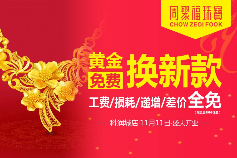 购周聚福珠宝足金9999饰品,每年8月1-8日可零工费免费兑换!只要您喜欢天天戴新款。