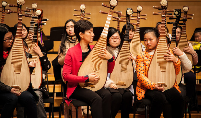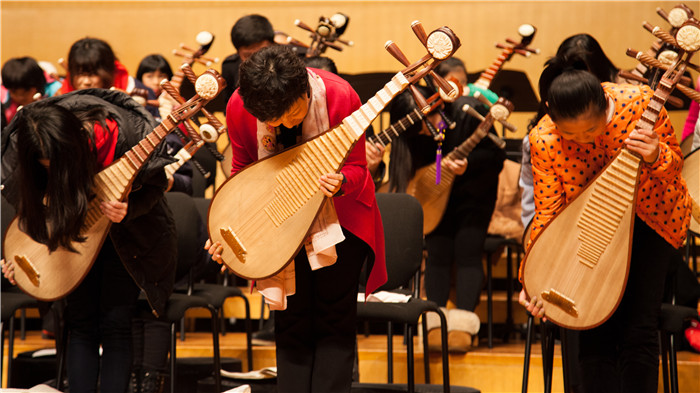 今天下午,中央音乐学院教授、著名琵琶演奏家章红艳老师来到琴台音乐厅,举办了一场完全公益的琵琶公开课,约50名江城琵琶爱好者在章老师的亲自指点下排练演奏《阳春白雪》,他们也将在明晚7点半与章红艳同台演出。下面,请看前方记者琴台君发来的现场实况: