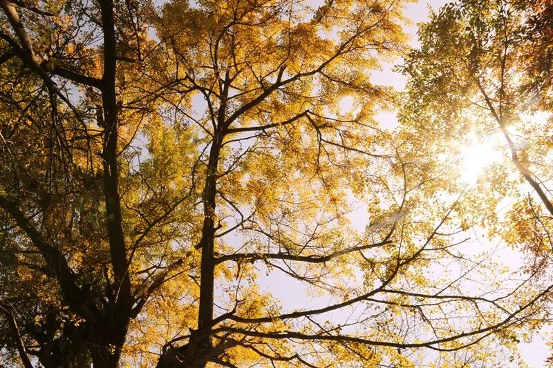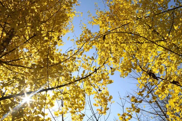 每当银杏飘黄的季节,我总是喜欢漫步在银杏树下,秋日的阳光穿过银杏叶,将光影撒在脸上,闭上眼,在不定的光影中,感受秋日的暖意。
