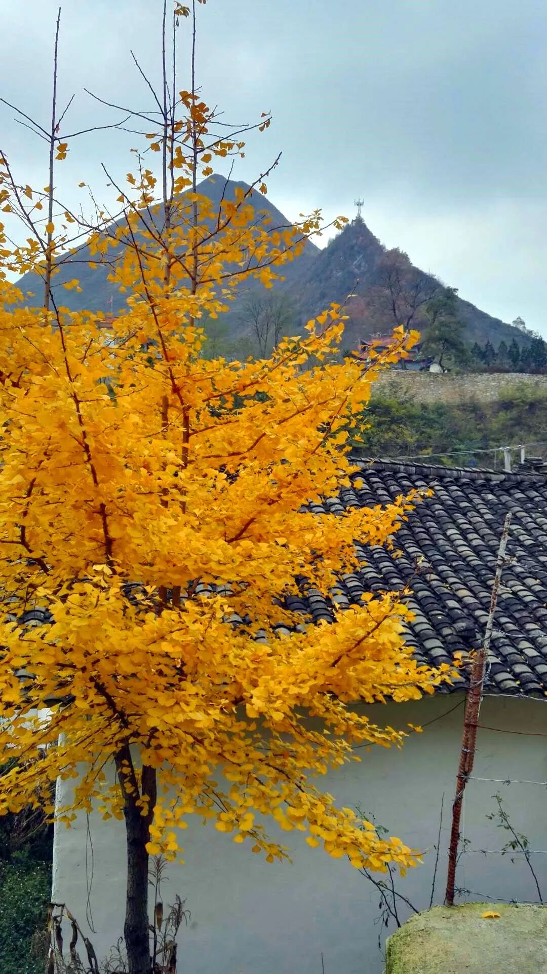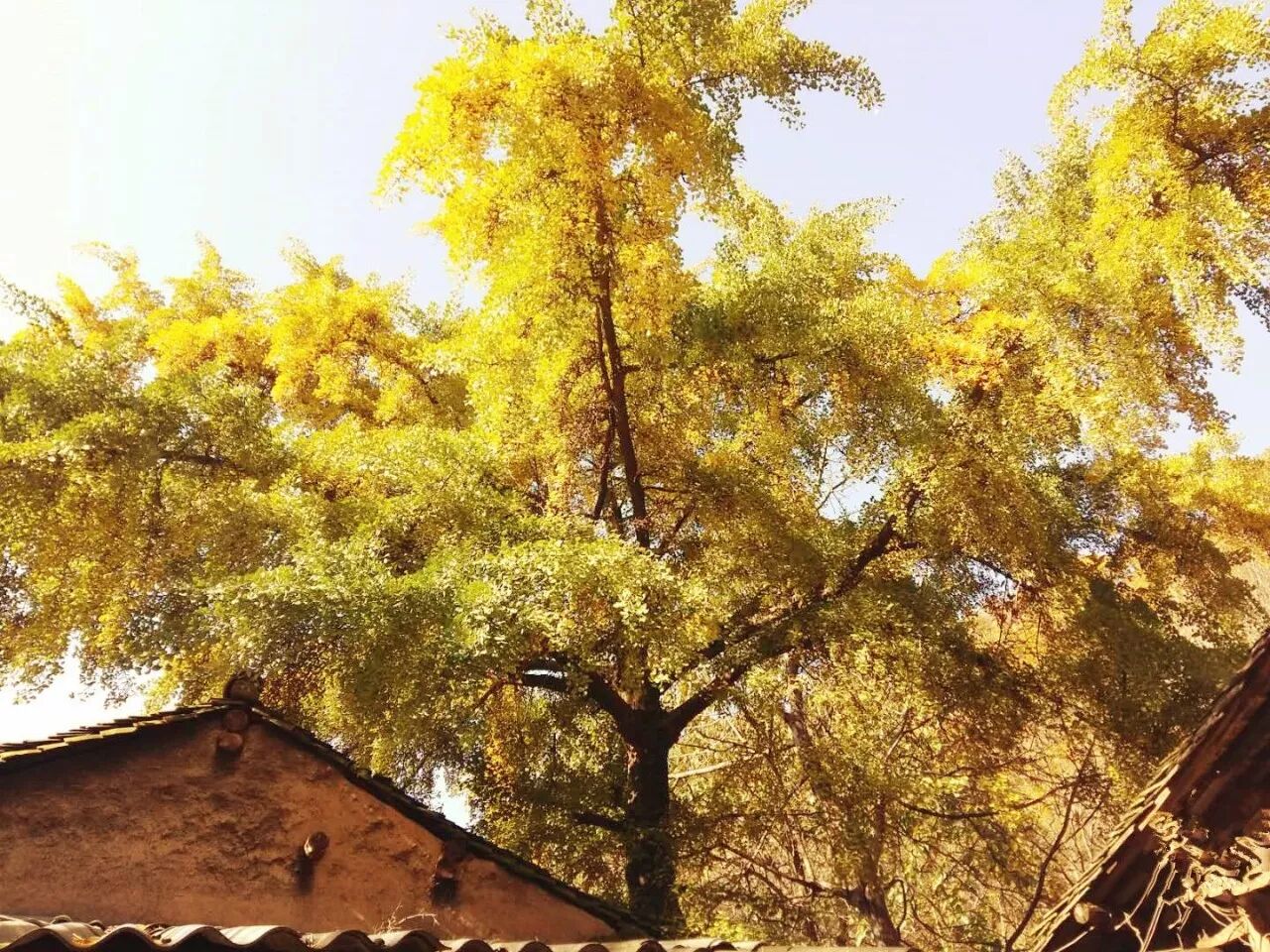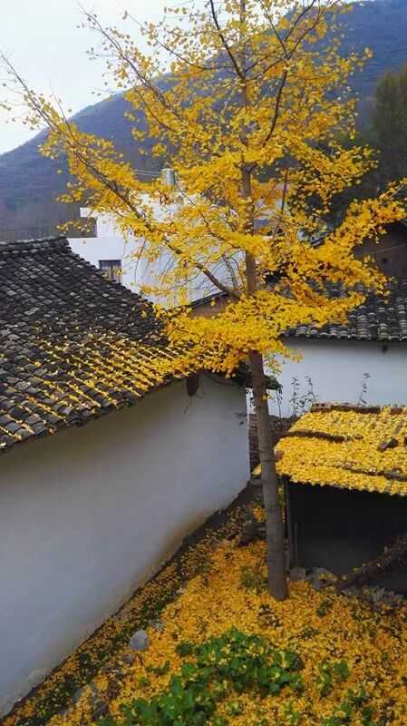 农家屋后银杏树