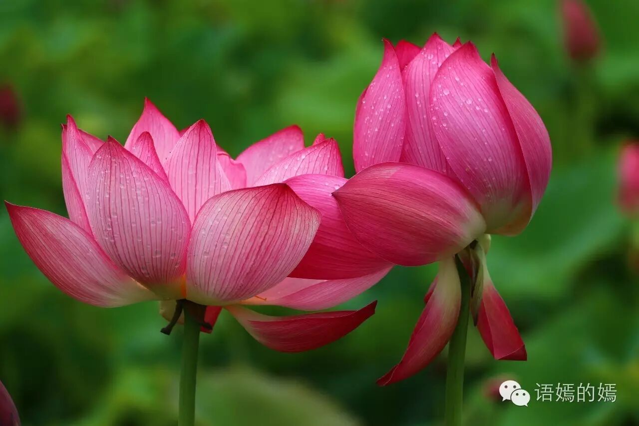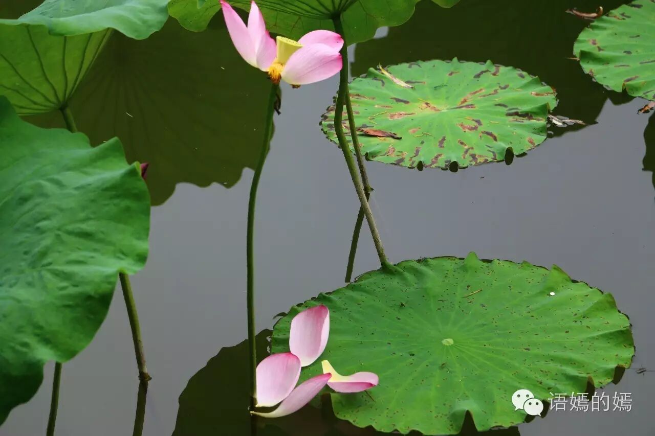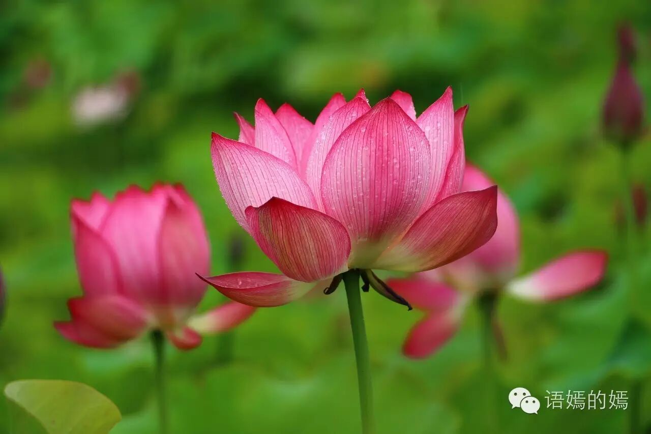 我站在这些荷花中,只觉得眼花缭乱,想去亲吻这一朵,又想去爱抚那一朵。而老天爷对我也格外的眷顾,竟然如我所愿下起了小雨,一时,整个荷塘都笼罩在蒙蒙烟雨中。这时的荷花,又别有一番风韵。像梨花带雨的小姑娘,像刚刚沐浴过的美人。微风一吹,绿浪翻滚,碧波荡漾,无数的珍珠在碧绿的大圆盘上滚来滚去。有花瓣徐徐落在圆盘上,越发衬托出荷叶的苍翠欲滴,而那零零星星飘落在荷叶上的花瓣,一下子就有了禅心,就有了诗意。闭上眼,轻嗅,屡屡清香,入肺,入脑,入心,只觉得全身舒坦。