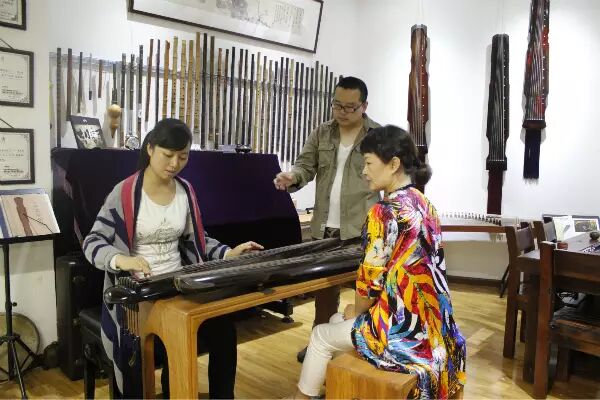 张老师对于我们的拜访甚是感动,简单寒暄之后,就让他的学员亲自上阵给我们演奏了一首古琴曲目,定要我们听听他教出来的弟子的古琴本事,张老师在旁时不时地指点一二,听来都是经年感悟。
