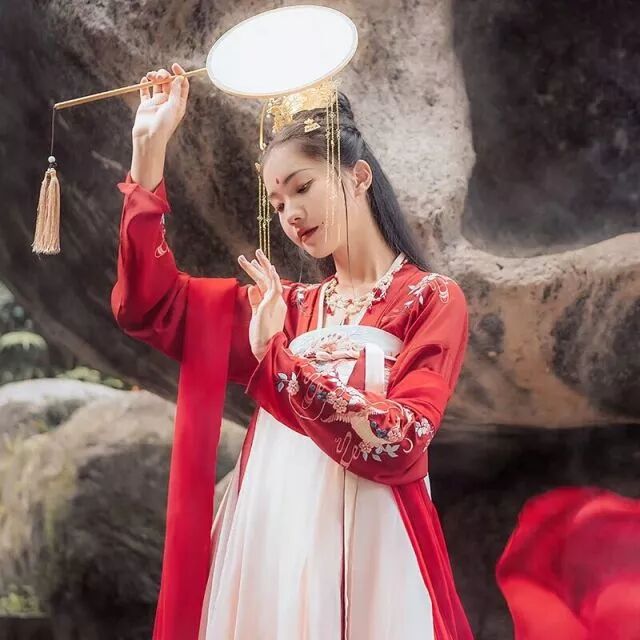 纤纤柔荑从精致的袖摆里伸出,三千青丝被步摇挽起,比起映日红的荷花,女子端庄的气质不止让春游的少年郎们驻足,更令千百年的后人们沉醉。若将古时的女子比作明月,汉服则是翩跹于清华月光间的云彩。
