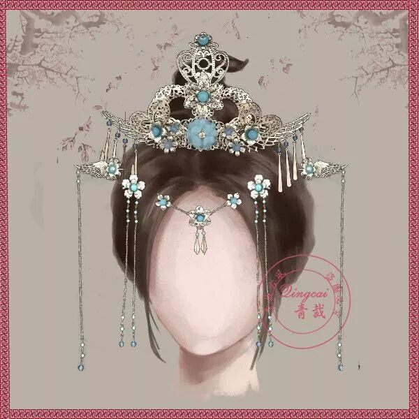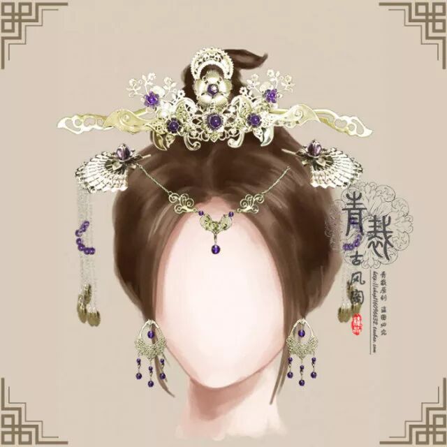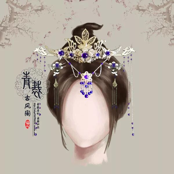 古代女子发饰多种多样, 有笄、簪、簪花、钗、梳钗、环、步摇、凤冠、华盛、发钿、金钿、银钿、扁方、流苏、梳蓖等。