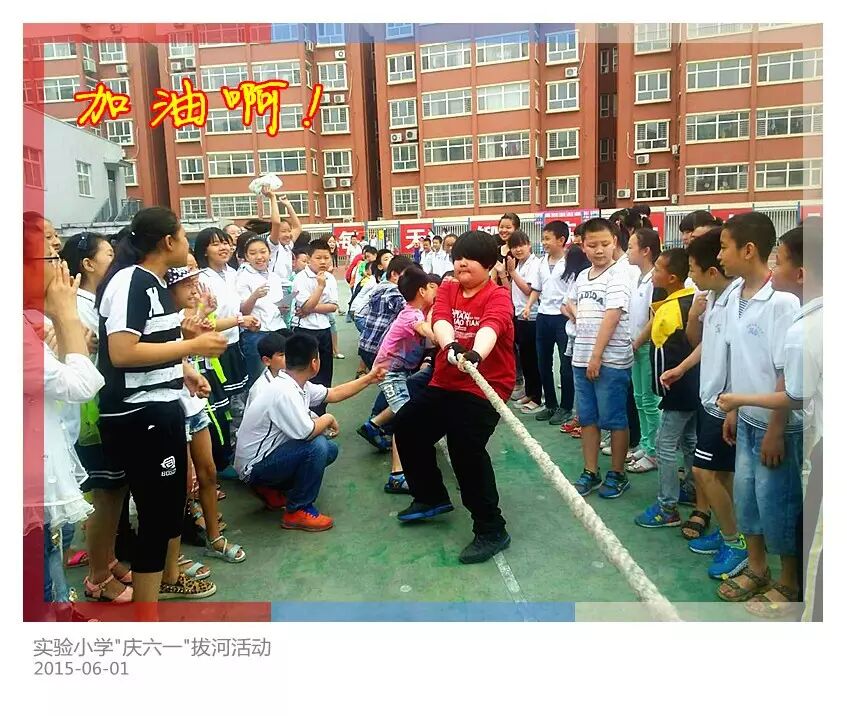 大礼堂里节目丰富多彩,掌声四起。学校的操场上同样也热火朝天,喊声阵阵。这里正在进行主题为“一根绳一条心”的拔河比赛。双方队员紧紧抓牢手中的绳子,齐心协力往后拉。热情的啦啦队在场外高喊着“加油!加油!”震耳欲聋的声音此起彼伏,激烈的角逐扣人心弦。每一场比赛,凡是参与的同学无不拼尽全力,被拉倒了再爬起来,手磨红了咬牙坚持,为了班级的荣誉,每位同学都爆发出了最强大的力量。