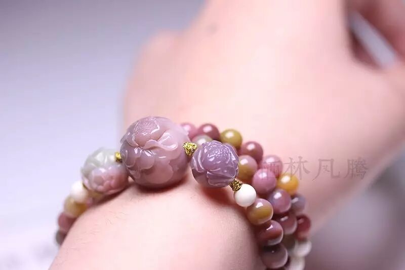 上等的盐源玛瑙色泽温润,颜色过渡自然,其中以纯色的紫色、紫红、紫粉、粉色为最上乘。