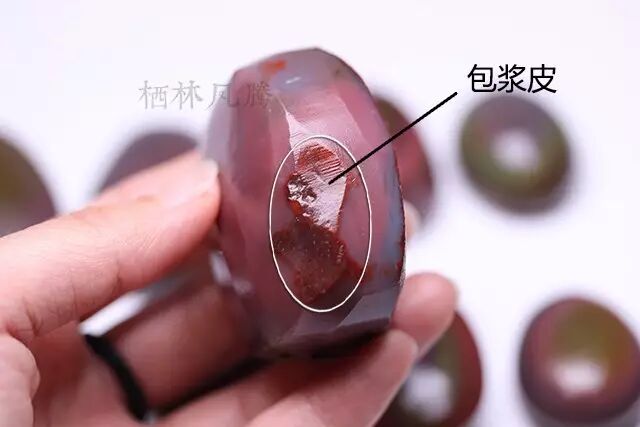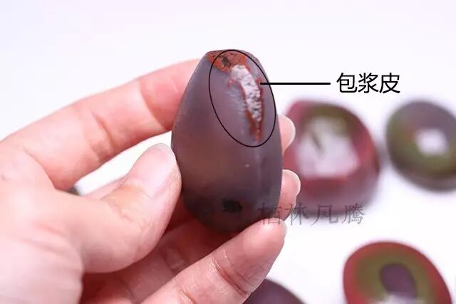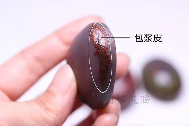 另外一点,很多人都知道包浆皮是南红包浆料非常有特色且非常具有象征性的一个代表,但很多人并不知,其实盐源玛瑙也是有包浆之说的。