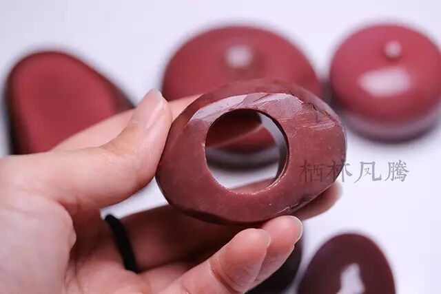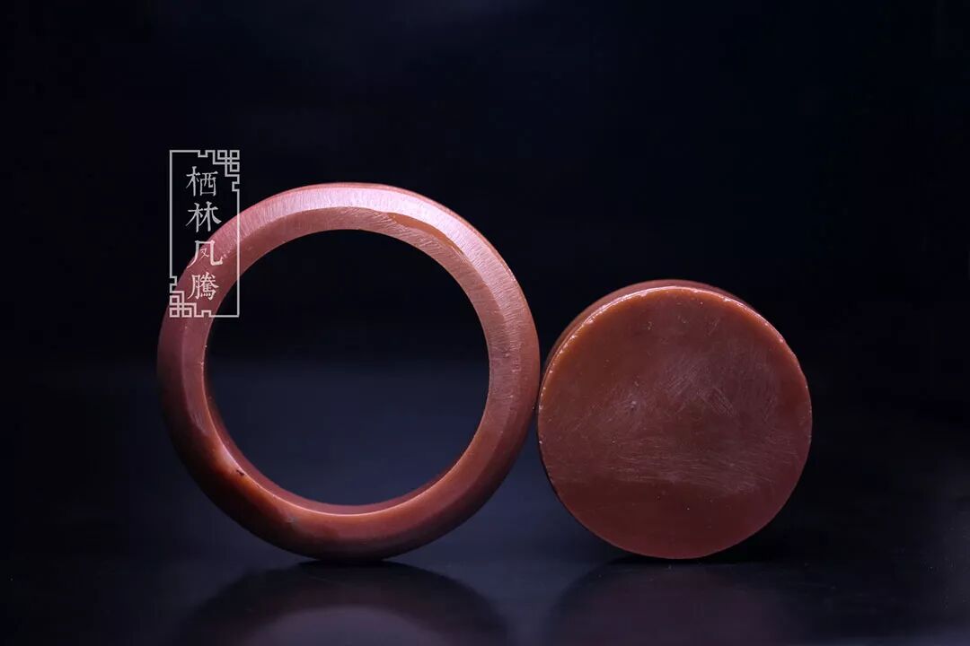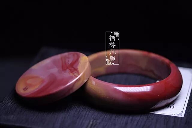 要知道盐源玛瑙多杂裂,能挑选出来做手镯的料子更是少之又少。例如这两块为一窝料切出来的手镯和镯心,真的是等待了很长时间才等到的这么一块纯色料子。