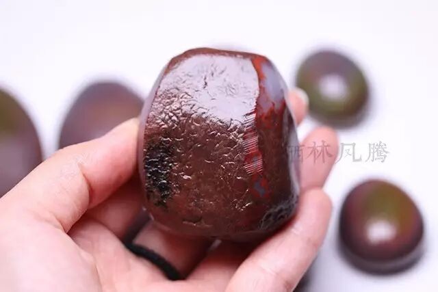 和南红包浆一样,盐源包浆也是原石在历经长久打磨和氧化之后,在表皮形成的一层光亮而紧致的氧化层。