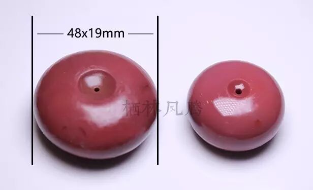 比如这两颗纯色平安扣,质感和色泽均为上乘,大的那颗的尺寸可达48x19mm。