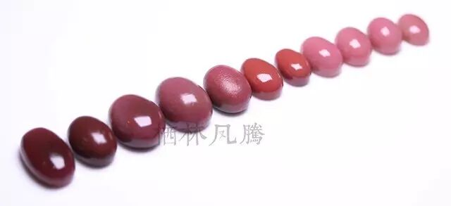其中,我们将色卡中的紫色(偏暖色的紫)、紫红色、红色以及过渡到粉色的这类暖色系,作为评判盐源玛瑙最佳的色彩范畴,因为这类暖色系有着高贵、华丽、典雅、温暖的色彩印象,带有鲜明的女性化色彩。
