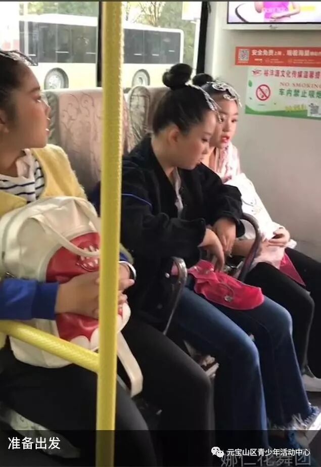 在去福利中心的路上,孩子们在声乐老师李顺梅
