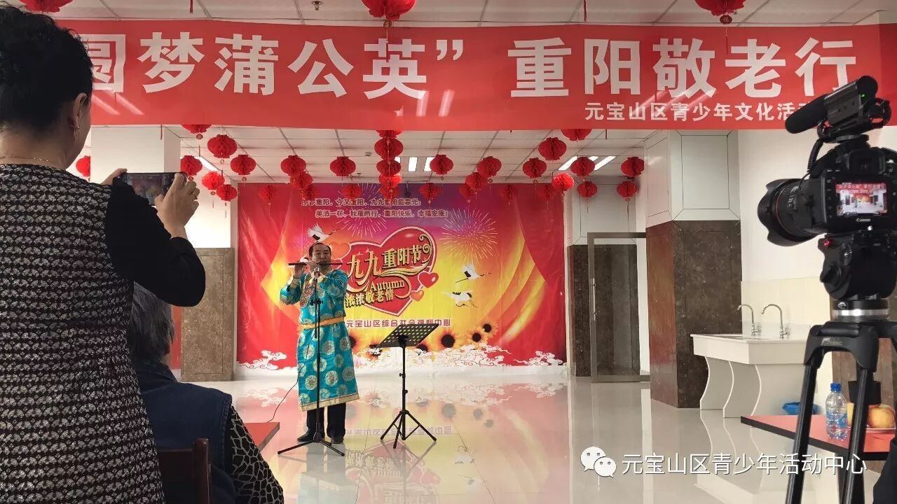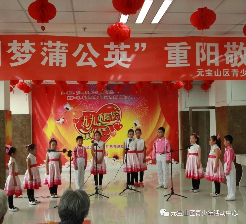 金秋送爽,丹桂飘香,值此重阳节到来之际,为弘扬中华民族敬老、爱老、助老的传统美德,营造重阳节的节日氛围,进一步活跃老年人身心。2017年10月28日元宝山区活动中心举办“圆梦蒲公英,重阳敬老行”慰问演出活动,演出专场在元宝山区综合社会福利中心举行,来自青少年活动中心的舞蹈团、合唱团、口才班为福利中心的老人们带来了精彩纷呈的文艺节目。