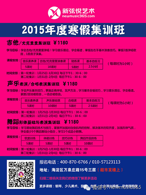 更多课程:钢琴培训、少儿美术培训、琵琶培训、古筝培训、企业演出排练、录音棚服务