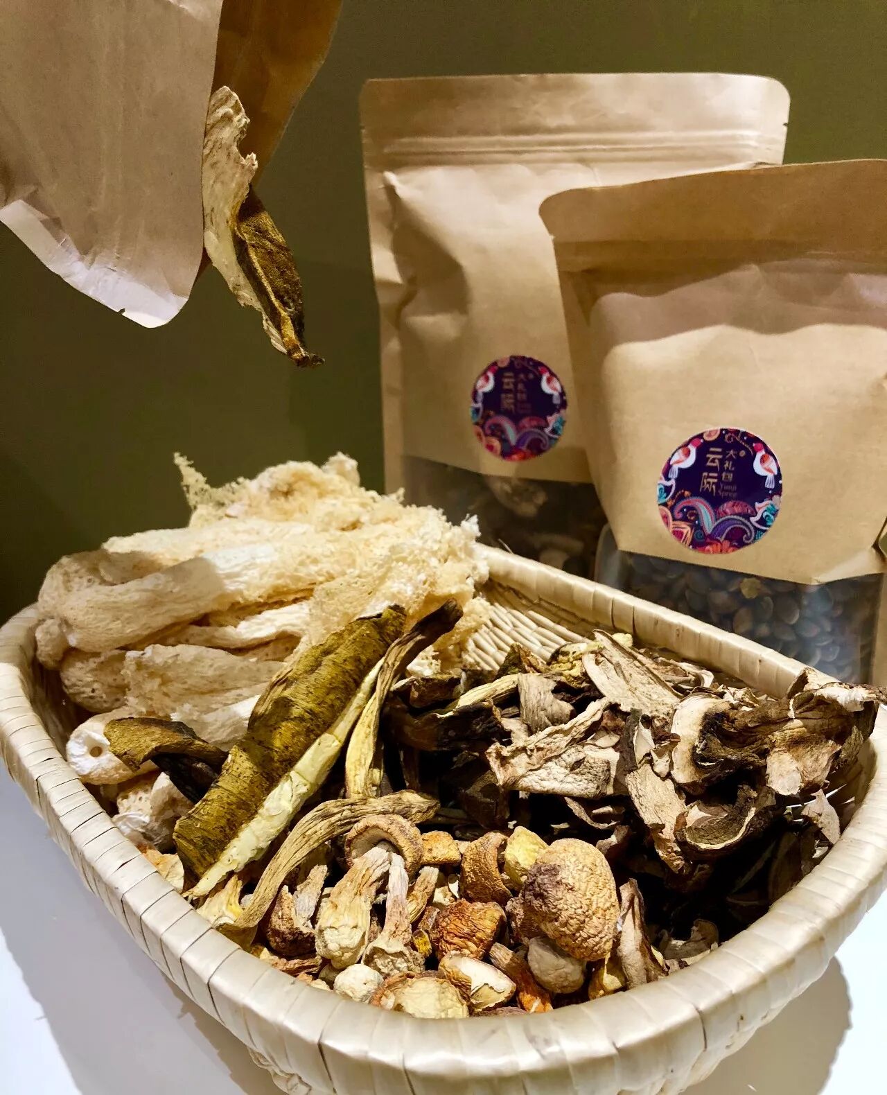 姬松茸、白牛肝菌、竹荪、云腿、腊排骨